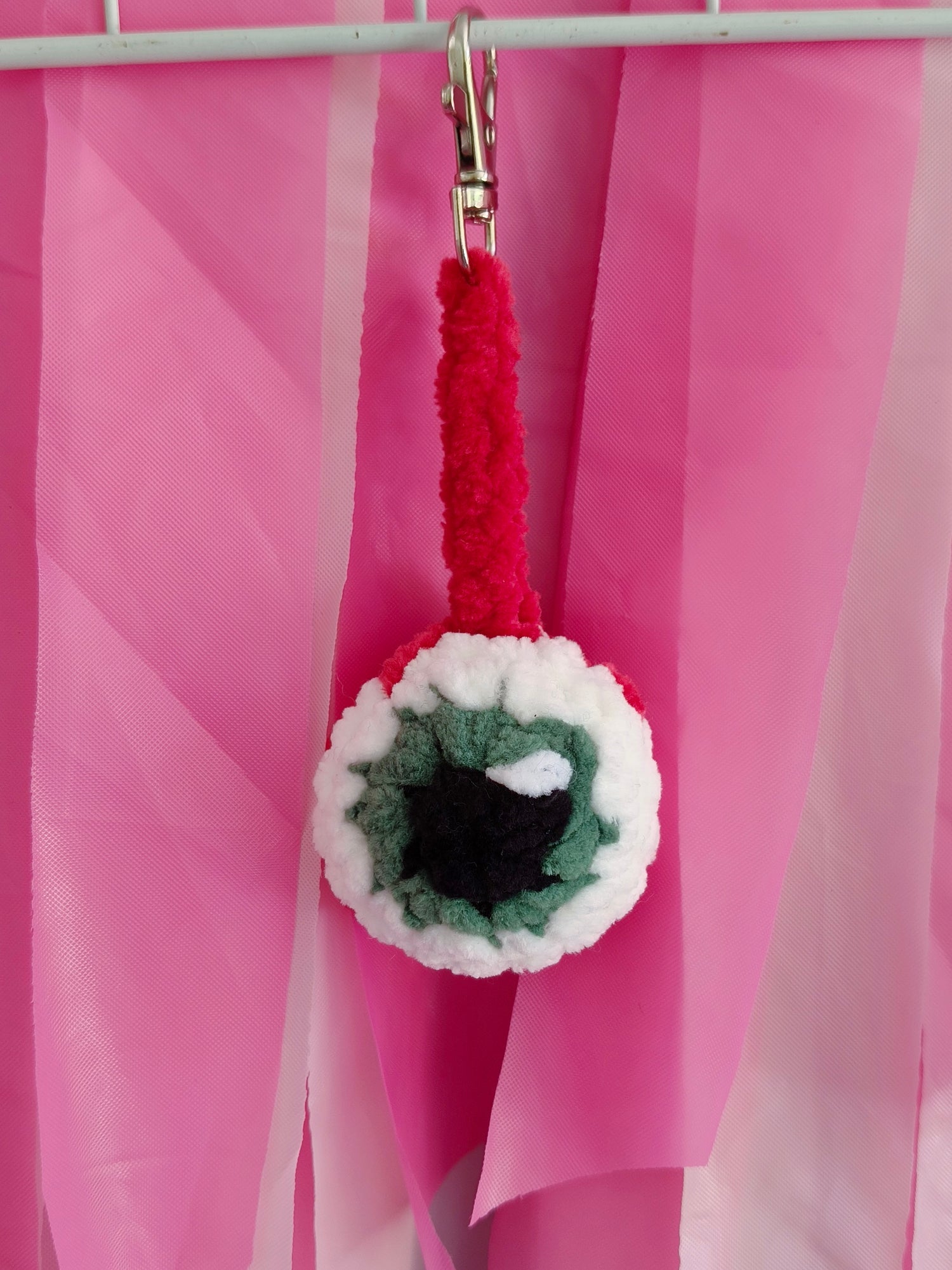 Pink eyeball bag charm to help spook up your bag.