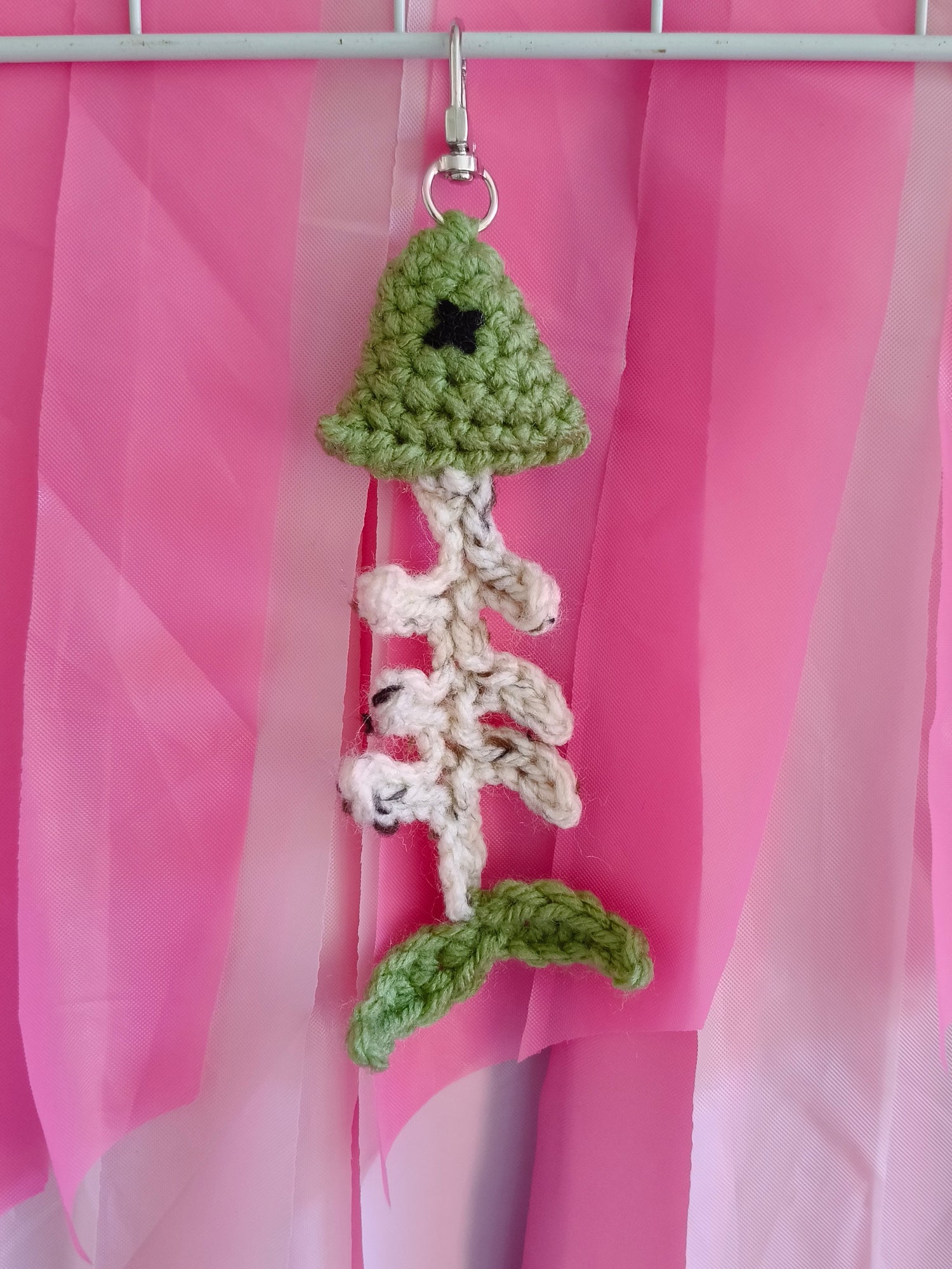 Green fish bones - Crochet bag charm